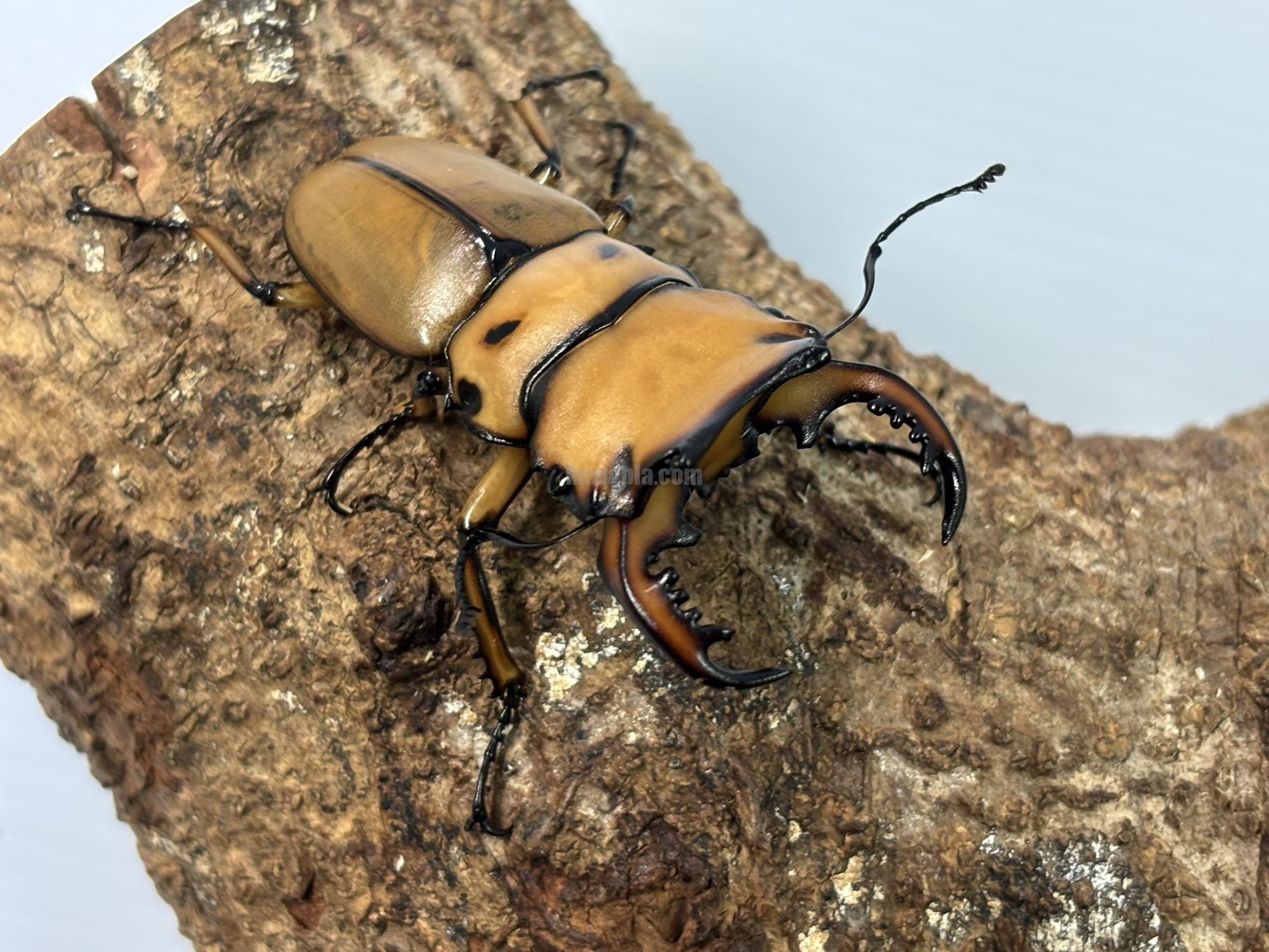 メンガタの名前のとおり、頭部の大きな衝立状のでっぱりが特徴的な変わったクワガタ。